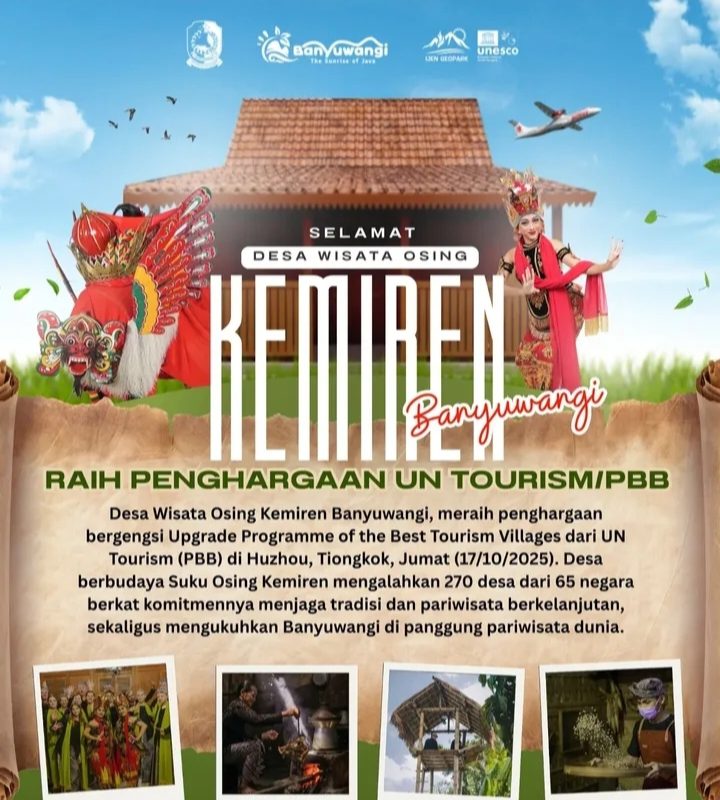 Desa Wisata Osing Kemiren Banyuwangi Raih Penghargaan The Best Tourism Villages Upgrade Programme 2025 dari UN Tourism BANYUWANGI, tarnabakunews.com, 19…