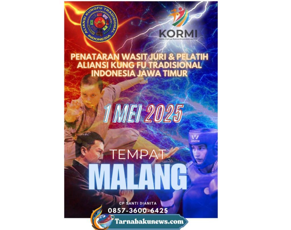 Surabaya – tarnabakunews.com : Dalam upaya meningkatkan kualitas sumber daya manusia di dunia seni bela diri tradisional, Aliansi Kung Fu Tradisional Indonesia (AKTI) Jawa Timur bekerja sama dengan Komite Olahraga Rekreasi-Masyarakat Indonesia (KORMI) akan menggelar kegiatan Penataran Wasit Juri & Pelatih di Malang, Jawa Timur, pada 1 Mei 2025 .