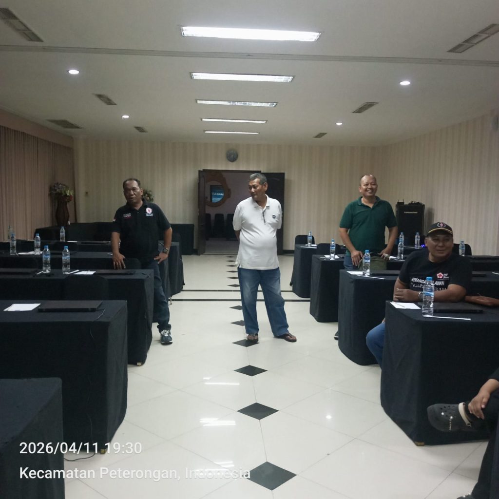 Kegiatan kerja bakti penataan ruangan telah dimulai sejak Sabtu sore (11/4/2026) pukul 14.00 WIB. Sejumlah anggota tampak bahu-membahu menata kursi, meja, serta perangkat pendukung ujian dengan penuh semangat kebersamaan.