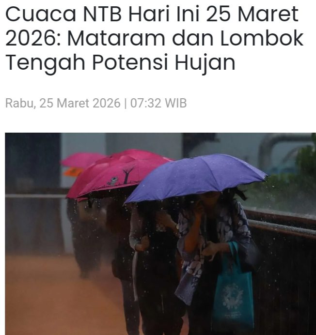 Kondisi cuaca ekstrem masih berlangsung hingga akhir Februari 2026, dengan prediksi BMKG menunjukkan hujan ringan hingga lebat di NTB pada 25 Maret 2026.