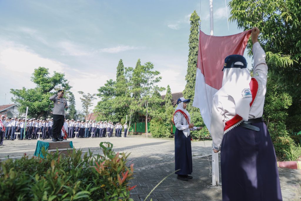 Bertindak sebagai inspektur upacara, Kapolres Jombang AKBP Ardi Kurniawan, S.H., S.I.K., CPHR, menyampaikan bahwa kegiatan ini adalah bentuk nyata kehadiran Polri di tengah masyarakat, khususnya lingkungan pendidikan.