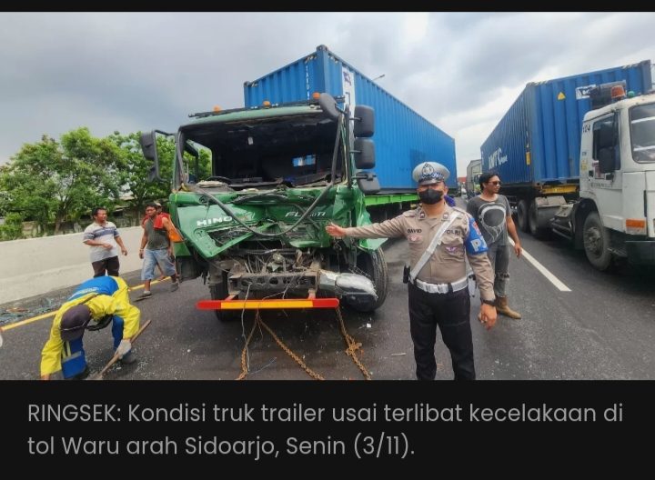 Sidoarjo, tarnabakunews.com, 3 November 2025 – Pada Senin pagi tadi, dua kecelakaan lalu lintas terjadi hampir bersamaan di Tol Waru, Kabupaten Sidoarjo, masing-masing di KM 748.200 dan KM 745 dalam jalur berbeda.