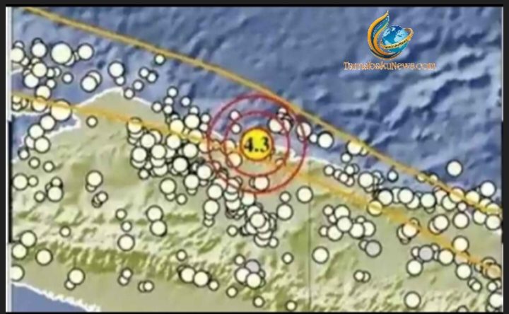 Jayapura, tarnabakunews.com, 19 April 2026 – Gempa bumi dengan kekuatan magnitudo 4,3 tercatat mengguncang wilayah Jayapura, Papua, pada Minggu (19/4/2026) pukul 04.36.59 WIB. Berdasarkan data Badan Meteorologi, Klimatologi, dan Geofisika (BMKG), pusat gempa berada sekitar 74 kilometer timur laut Kepala Daerah Jayapura pada koordinat 2,38 Lintang Selatan dan 140,14 Bujur Timur, dengan kedalaman 16 kilometer.