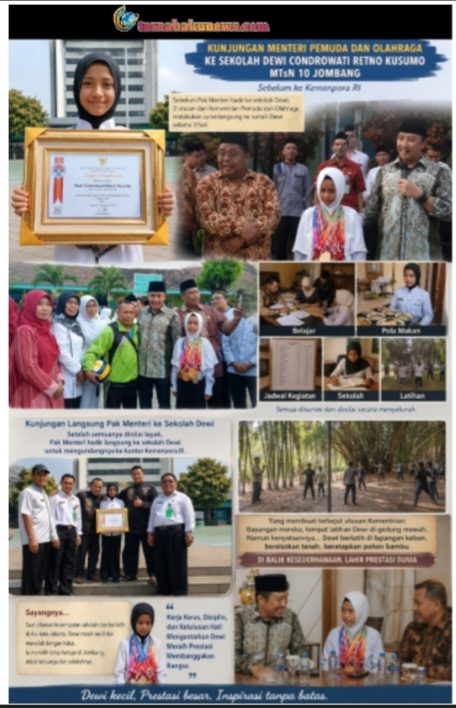 Setelah seluruh proses penilaian dinyatakan layak, barulah Menteri Pemuda dan Olahraga saat itu, Imam Nahrawi hadir langsung ke sekolah Dewi, MTsN 10 Jombang.