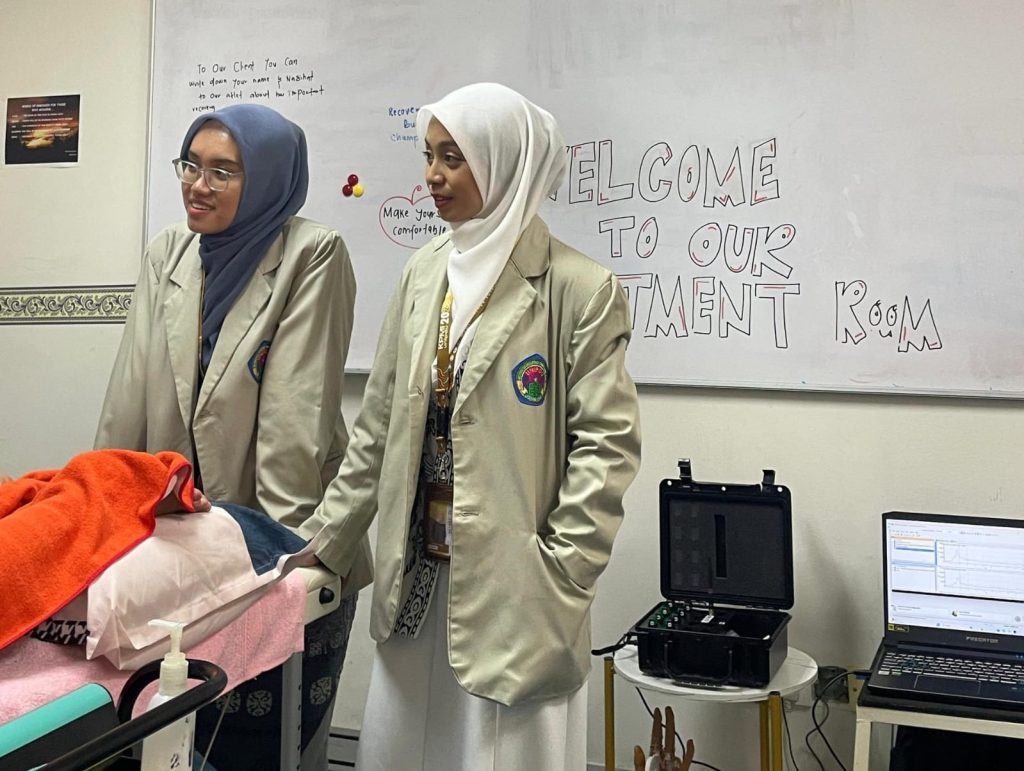 di Universiti Teknologi Malaysia (UTM), termasuk tur kampus, mengikuti program kebugaran bersama mahasiswa S1 dan S3, serta praktik dan uji coba Bioelektrikal Meridian Terapi (BMT) dan alat Massage Terapi.