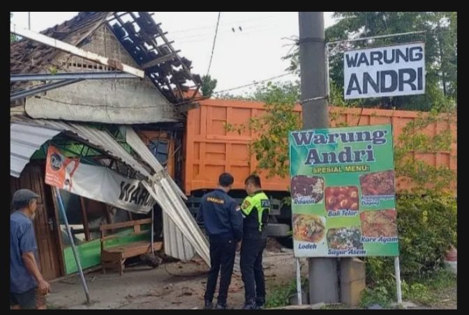 “Kejadian sangat cepat, truk tronton tiba-tiba oleng dan langsung menabrak warung dan tempat tambal ban.”