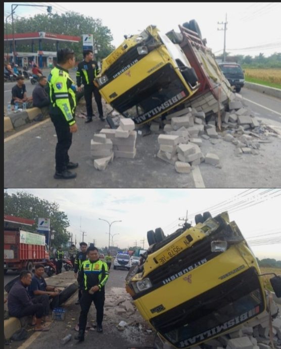 Jombang, tarnabakunews.com, 31 Oktober 2025 – Dua truk mengalami kecelakaan di Jalan Raya depan SPBU Desa Miagan, Kecamatan Mojoagung, Kabupaten Jombang, pada Jumat pagi sekitar pukul 05.15 WIB. Kecelakaan ini melibatkan truk tronton bernomor polisi AG 9304 UP yang dikemudikan oleh M. Nuril Hidayat (31) dan truk Mitsubishi N 9578 UE yang dikemudikan oleh Andi Christian Mulia (30). Diduga truk tronton kehilangan kendali sehingga oleng menyerempet truk Mitsubishi dan menabrak warung milik Anik Ningtyas serta tempat tambal ban milik Muna’in di pinggir jalan.