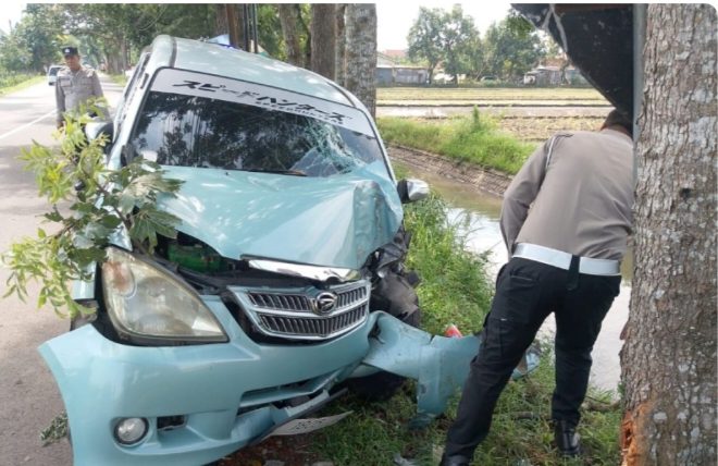 Mobil Daihatsu Xenia bernomor polisi W 1805 VQ yang dikemudikan Sunarto (46), warga Menganti Gresik, menabrak pohon besar di pinggir jalan saat menuju Tulungagung.