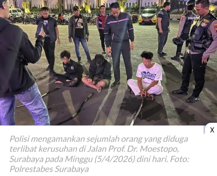 “Saat ini sudah diamankan di mako. Sedang dalam proses pemeriksaan. Kami memastikan situasi sudah kondusif dan masyarakat dimohon tetap tenang. Polrestabes Surabaya terus meningkatkan patroli di titik-titik rawan untuk mencegah kejadian serupa. Kami tekankan kepada para remaja agar tidak terlibat dalam aksi tawuran atau kegiatan anarkis yang membahayakan kamtibmas.