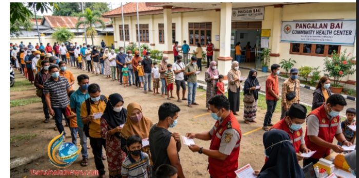 KLB CAMPAK DI BANYUASIN: RATUSAN WARGA MEMADATI PUSKESMAS PANGKALAN BALAI UNTUK IMUNISASI
