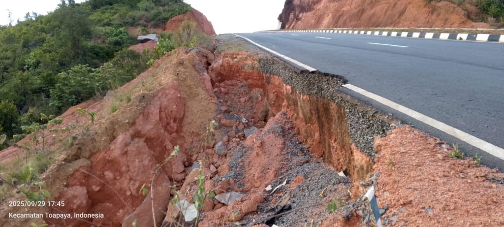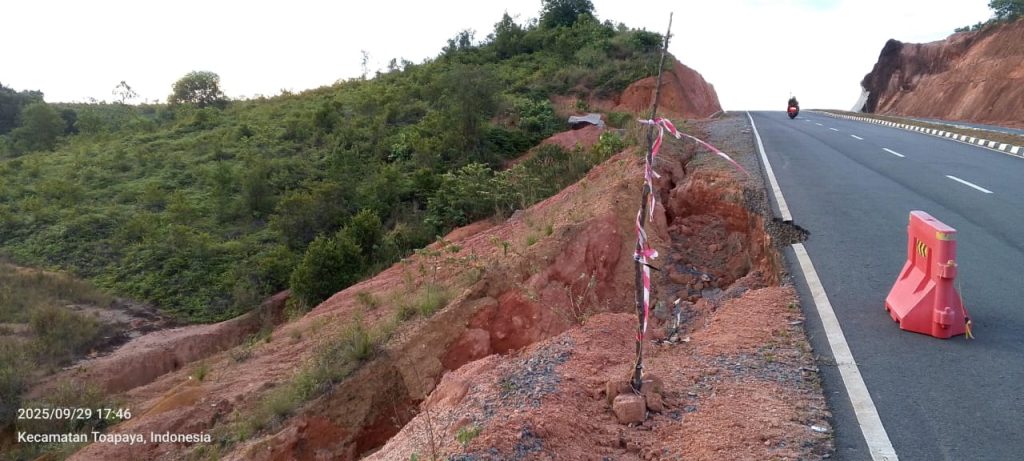 Kondisi terparah terjadi sekitar satu kilometer dari bundaran Lintas Barat. Derasnya aliran air hujan mempercepat proses erosi dan membuat longsor meluas ke badan jalan.