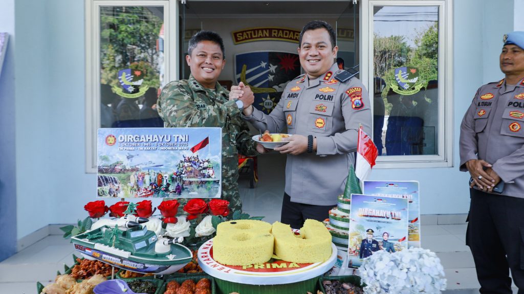 Dalam rangka memperingati Hari Ulang Tahun (HUT) Tentara Nasional Indonesia (TNI) ke-80, Kapolres Jombang, AKBP Ardi Kurniawan, S.H., S.I.K., CPHR bersama Pejabat Utama mengunjungi Kodim 0814 Jombang dan Sat Radar 222 Ploso Jombang untuk memberikan kejutan dengan membawa tumpeng. Rabu (8/10/2025).