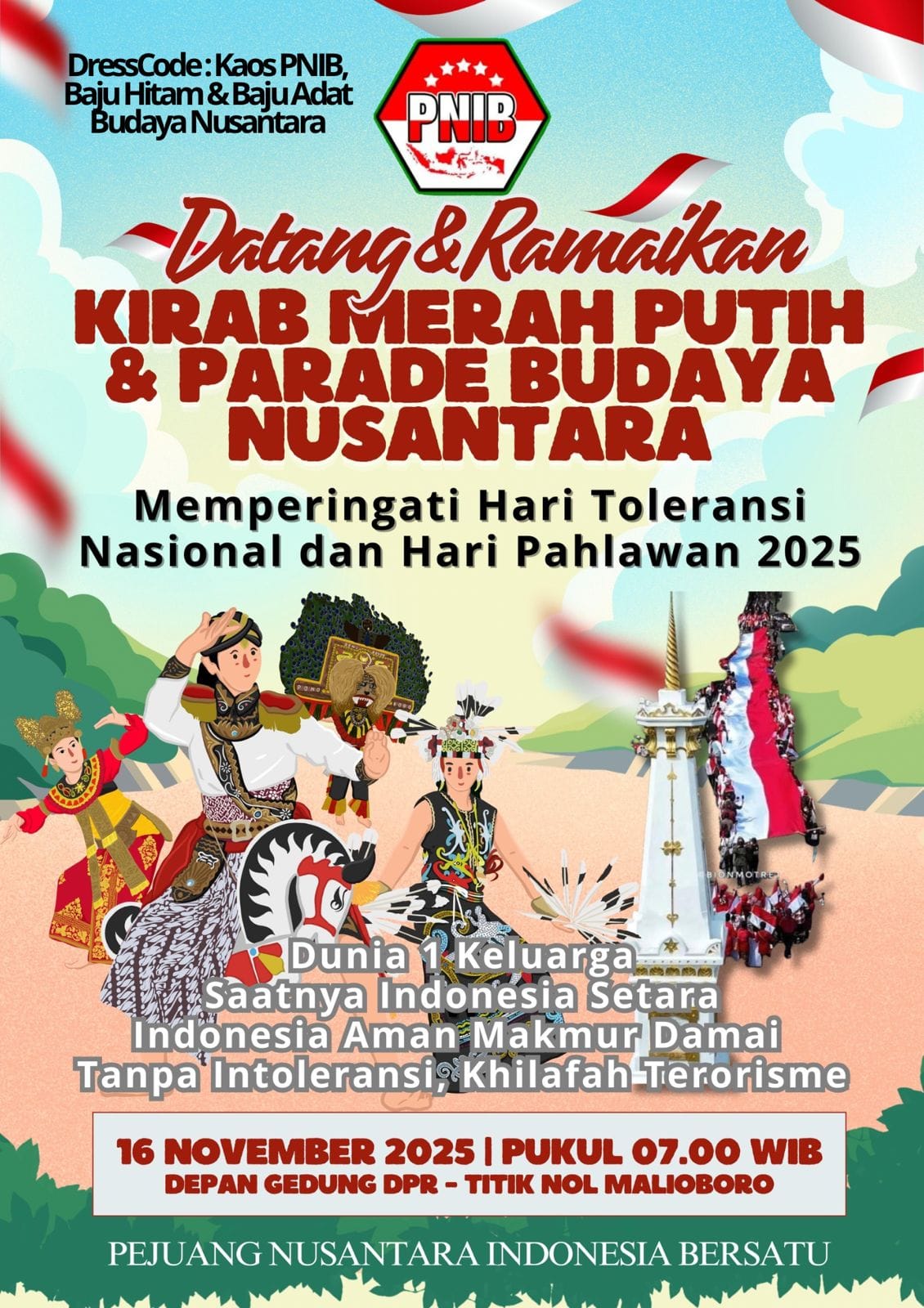 PNIB: Kirab Merah Putih Menjadi Ritual Kebangsaan dalam Rangka November Bulan Pahlawan dan Toleransi, serta Desember Bulan Harmoni Kerukunan Umat Beragama Indonesia