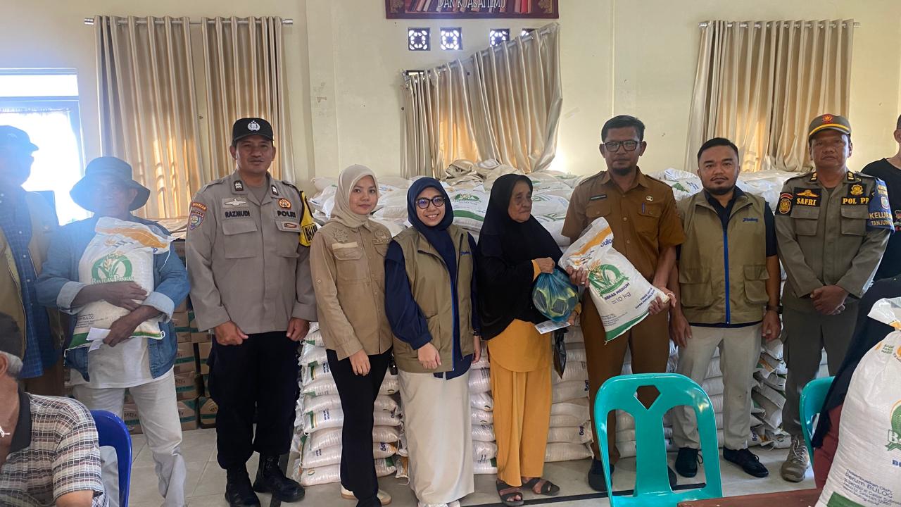 Pengamanan dipimpin Kapolsek Bukit Bestari, Kompol Suardi, S.E., M.H., bersama Bhabinkamtibmas Tanjung Unggat, Aiptu Razmudi. Kehadiran polisi memastikan distribusi bantuan berjalan aman dan tertib.