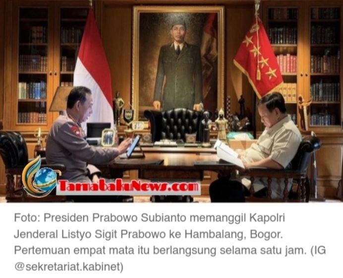 Presiden Republik Indonesia, Prabowo Subianto, memanggil Kepala Kepolisian Negara Republik Indonesia (Kapolri), Listyo Sigit Prabowo, dalam sebuah pertemuan tertutup di kediaman pribadi Presiden di kawasan Hambalang, Kabupaten Bogor, pada Jumat (24/04/2026).